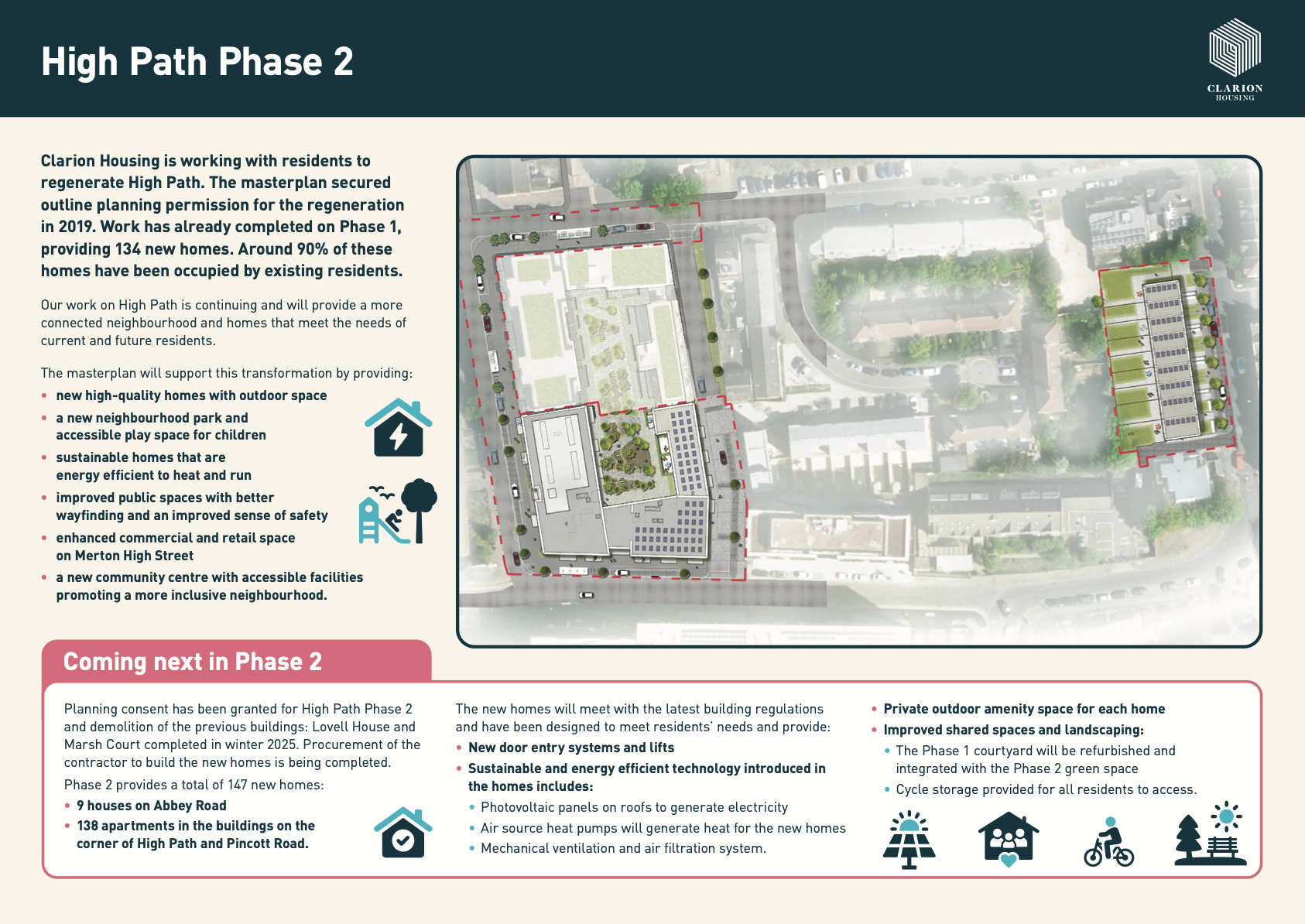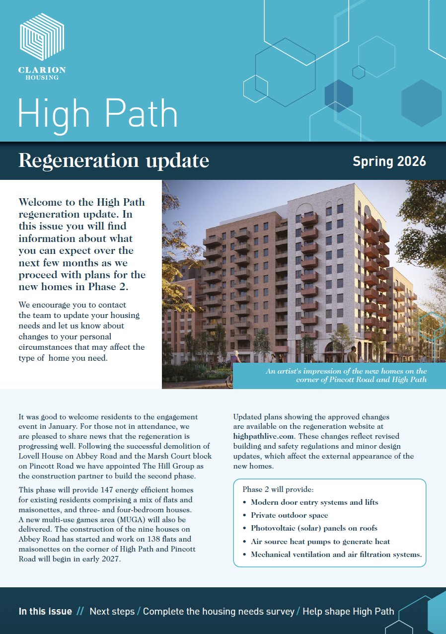 Clarion Housing Association Limited is registered with Regulator of Social Housing (4865); and is a Charitable Community Benefit Society under the Co-operative and Community Benefit Societies Act 2014 (7686) and affiliated to The National Housing Federation, and g15 (London’s 15 largest housing associations). VAT no 675646394. Clarion Housing Association Limited’s registered office is at Level 5, Greater London House, Hampstead Road, London NW1 7QX.